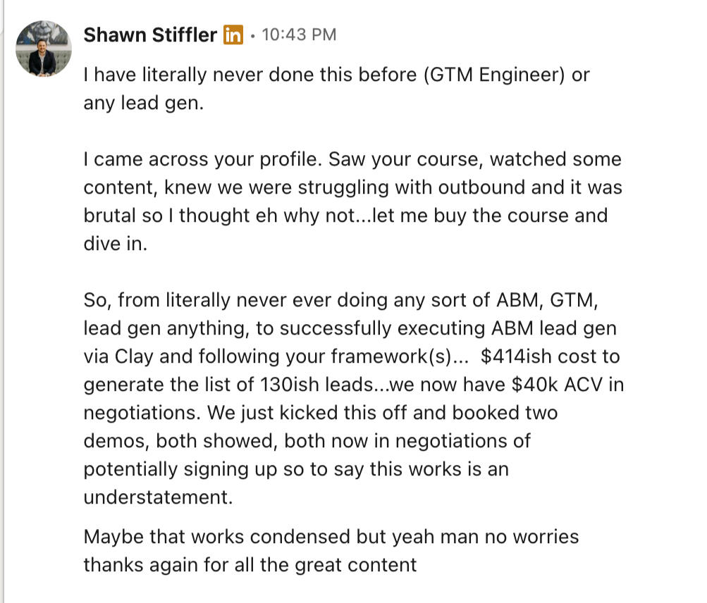 The only way to know if an AI GTM tool sucks is to evaluate the quality of the message it produces. This course will teach you how to produce messages your prospect would pay to receive.