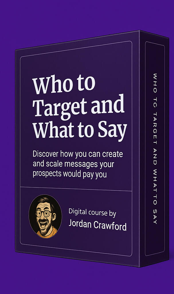 The Who To Target and What to Say Course teaches you my complete GTM framework.You'll learn about PQS (Pain Qualified Segments). This is the only framework you need to be able to find the companies who need your product immediately.You'll also learn about the PVP (Permissionless Value Prop). These are messages the prospects would pay to receive them.PVPs are built by combining public and private datasets to reveal public and private insights that your prospects didn't have access to before you message them.